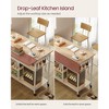 - 【EXTENDABLE WORKTOP】This kitchen island features a drop leaf that extends the work surface from 19.7" to 28.7" in depth, making it perfect for temporary meal prep or as a dining table. The drop leaf can be easily managed by one person
