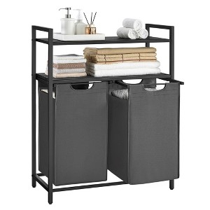 - [Practical & Versatile] This laundry sorter comes in handy in your laundry room, bathroom, or bedroom. It features 2 liners and 2 shelves, enabling you to hide messes and organize your laundry items with ease