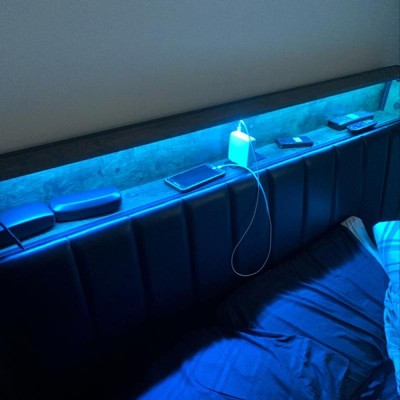 - [Color and Mode-Adjustable LED Lights] The LED lights built into the headboard boast 25 colors, 6 brightness levels, 3 flashing modes, and 6 flashing speeds. You can use the remote control to adjust the color and mode to create different atmospheres