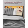 - [Comfy and Chic] Along with camel brown panels, a headboard upholstered with gray PU means this stylish bed frame will easily blend with any home décor. An ergonomic 105° tilt, meanwhile, makes the headboard comfortable to recline on while reading in bed
