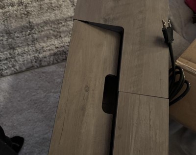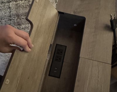 The flap on the top of the shelf to hide the power cords doesn’t stay flat, it falls down into the compartment. The flap on the top is the entire reason to purchase the product to hide the cords. Not happy that I’d have to break down the entire product to get any sort of resolution or refund. Never ordering third party from Target again.