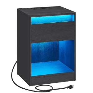 VASAGLE Nightstand with Charging Station - Adjustable LED Lights - Modern Bedside Table