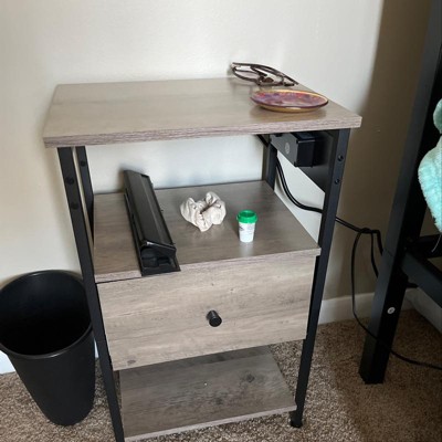 VASAGLE Nightstand with Charging Station, Side Table, End Table 1 Pack 2 Drawer Rustic Brown and Classic Black