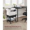 - [Easy to Move and Lock] Four 360° swivel castors, 2 of which have brakes, allow you to move this home printer stand around effortlessly and securely lock it in place wherever you need it