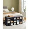 - WHAT YOU GET: A cushioned shoe bench for comfortable sitting when change shoes and 15 shoe storage cubes for an organized entryway