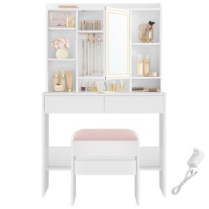 - 【CUSTOMIZABLE MIRROR LIGHTING】Swiftly switch between 3 adjustable LED light colors by shortly tapping the touch button, and set your preferred brightness level with a long press. This vanity table enhances your makeup routine every time
