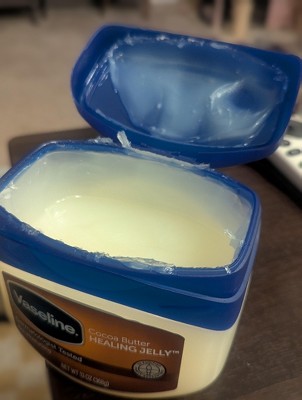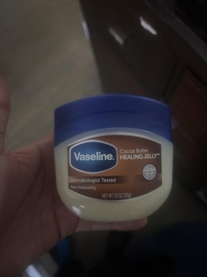 Vaseline Jelly Cocoa Butter This formula works to help heal dull, dry skin and give skin a radiant, healthy look. Vaseline Petroleum Jelly has long been used to help heal dry skin and is effective at locking in moisture. Our Vaseline Jelly Cocoa Butter combines the dry skin healing benefits of Vaseline Jelly, with cocoa butter, which is known to nourish your skin. Vaseline Jelly forms a protective barrier, to seal in moisture deep within the skin's surface layers and to enhance the skin's natural barrier recovery. With its moisturizing properties, Vaseline Petroleum Jelly Cocoa Butter is great for tackling dull, dry skin and is suitable for sensitive skin. This product is also made with cocoa butter, which is known to be a great moisturizer, especially for particularly rough areas like elbows, knees, and heels. Simply apply Vaseline Jelly Cocoa Butter daily to deeply condition, relieve, and rejuvenate dry skin. Gentle on Skin Vaseline Jelly with Cocoa Butter isn't just good for dry skin; it's also gentle on skin. Vaseline Petroleum Jelly Cocoa Butter is made with triple-purified petroleum jelly. Vaseline wonder jelly has also been dermatologist tested and is a non-comedogenic skin protectant, meaning it won't clog your pores. These factors make it perfect for daily use. The convenient, recyclable, flip cap jar makes it easy to access the moisturizing power inside with just one hand. Choose Vaseline Petroleum Jelly Cocoa Butter and you can maintain smooth, glowing skin all year round.