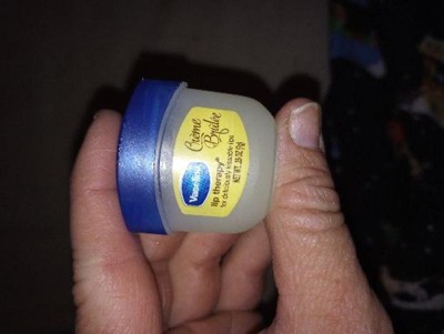 This lip balm comes in a cute mini tub! Smells good and has the same great quality as you would expect from the Vaseline brand.