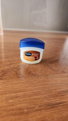Vaseline Lip Therapy Lip Balm Mini Cocoa Butter is clinically proven to help heal dry lips. The non-sticky formulas of Vaseline lip balm minis are invitingly soft and melt onto lips. The Vaseline Lip Therapy Cocoa Butter Mini comes in iconic packaging that fits neatly in your pocket or purse, so you can hydrate on-the-go. Vaseline for Lips Made with the Original Wonder Jelly. With its original formula, Vaseline Lip Therapy is a lip balm you can rely on that provides long-lasting relief from dryness. This everyday essential for healthy-looking lips is made with pure Vaseline Jelly, just like all Vaseline lip care products. Vaseline Jelly is the original wonder jelly that has been helping to heal dry skin since 1870, and now you can get all its benefits in a lip balm product exclusively designed for lips. The top, protective layer of skin on your lips is thinner than on the rest of your body, so it needs a lip balm that provides long lasting moisturization. These formulas help support the natural recovery of your dry lips by locking in moisture. Perfect for On-The-Go. The elements can be hard on your lips, so it’s essential to keep them moisturized. Vaseline Lip Therapy Lip Balm Mini Cocoa Butter is great for safeguarding against dryness caused by weather, so you can be confident that your lips are ready to face the outdoors.