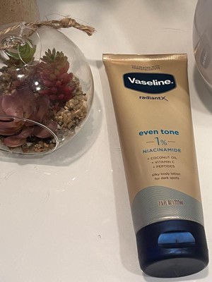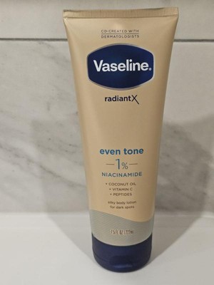 Vaseline Radiant X Even Tone Coconut Oil, Vitamin C & Peptides Body Lotion for Dry Skin - 7.5 fl oz