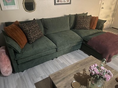 - Stylish and Comfortable: L-Shaped Sectional Sofa,This large piece boasts a sleek contemporary look, upholstered in skin-friendly, durable chenille. 2-layer seat cushions blend high-resiliency memory foam and a spring system for cozy, supportive seating.