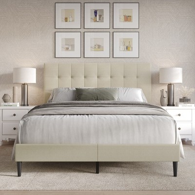 VASIP Queen Bed Frame with Upholstered Headboard ,Storage Headboard with Charging Station ,Antique White