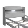 This platform bed features a timeless antique grey finish that complements various interior styles. Designed for both comfort and functionality, it includes a storage headboard with two shelves and an integrated LED light, offering convenient lighting and space-saving storage for books, devices, or personal items. The built-in guardrails enhance safety during sleep. Constructed from solid pine wood and MDF, the bed delivers durable support with a high weight capacity. No box spring is required, as the 10 wooden slats provide reliable mattress support. Ideal for bedrooms seeking a blend of elegance, practicality, and modern convenience.