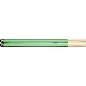This Bamboo Splashstick has the same physical design as Vater's original Splashstick, but is constructed from bamboo dowels. The bamboo offers superb durability and some added weight for a solid feel, without excess volume. Bamboo is also the fastest growing plant on Earth, making this a very eco-friendly stick. Vater's Bamboo Splashstick is made of 19 hand-selected bamboo dowels that provide warm acoustic tonality while producing a solid crack. The extended rubber grip leaves 4" of the dowels exposed, offering stick-like feel with excellent durability in the rim-shot area.