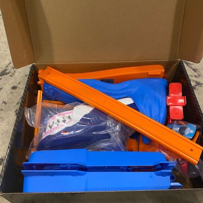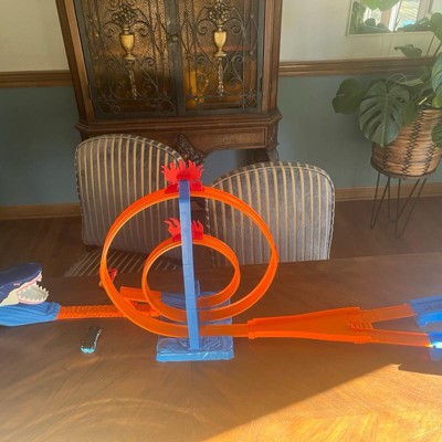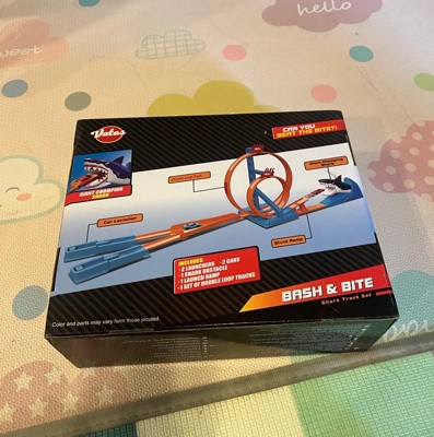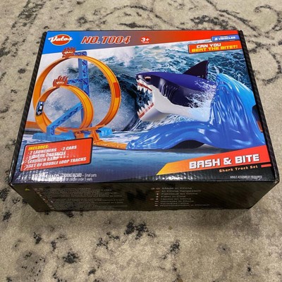 [This review was collected as part of a promotion.] The shark mouth race track is a fun twist to race car tracks. I like the pull release system for cars to have about speed/force to get through the loops. The race track is very entertaining, especially with the cars jumping into the sharks mouth. The one challenge with the system is taking it apart. Once the race track is set up it is very difficult to take apart, to store or put away.