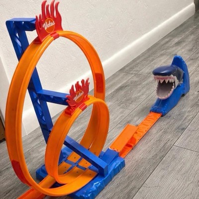 [This review was collected as part of a promotion.] This is a super fun and high-speed toy for a car-loving kid. My son is 3 and loves that there is a shark on this. Putting it together is a little time-consuming, but the directions are very clear and easy to follow. Like a lot of the off-brand toys, the cars aren’t super high quality that come with it, but I was able to use hot wheels cars that we already had and they worked great.