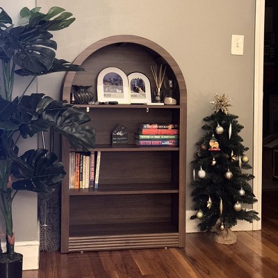 Vatros Small Black Bookcase Arched Bookshelf, Black