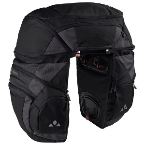 This 3-bag rear wheel set is ideal for multi-day cycling trips, offering 68 liters of organized storage. It includes two side bags with large compartments and outer pockets, and a top bag that connects them, which can also be used as a daypack or backpack. All bags can be used individually or together, and attach securely to bike racks via the QMR 2.0 system. Rain covers are included, and extra gear can be strapped on top. Made from mostly recycled materials and featuring eco-friendly water repellency, it’s a sustainable choice for long-distance cyclists.