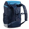 The Puck 10 children's backpack has been completely redesigned and the current version is even better adapted to the needs of youngsters. It has a waterproof floor so you can put it down anywhere and not worry about your gear getting wet. Its kid-friendly suspension system with adjustable sternum strap ensures a comfortable ride. A cover is included for rain showers, plus two spacious outer mesh pockets, a lightly padded seat mat, reflective prints and a lid compartment that offers space for tissues and other small items. VAUDE has added a magnifying glass to the Puck 10 pack to satisfy kids' love of discovery: Small treasures and other things that are found on the way can be attached to the gear loops on the pack. This makes the Puck 10 a real jack of all trades for forest kindergarten, hiking holidays and your child's first adventures in the mountains. This backpack is made of recycled material and is produced with Eco Finish, an environmentally friendly water-repellent material without the use of fluorocarbons (PFC). The VAUDE Green Shape label stands for environmentally-friendly, functional products made from sustainable and bluesign® certified materials.