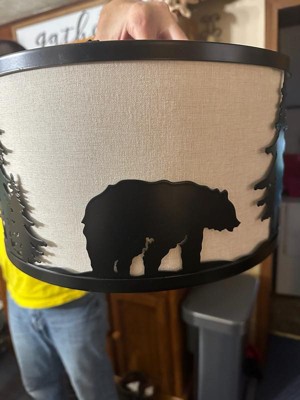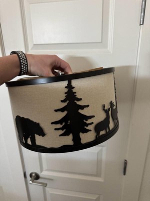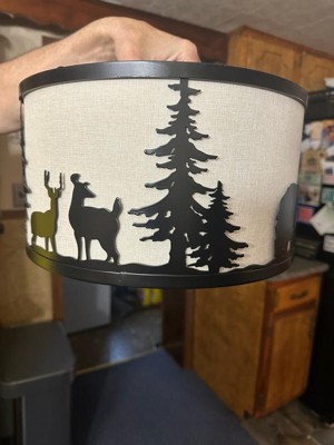 Embrace the serene whispers of the artfully crafted Acadia semi-flush ceiling light to bring the essence of the wild into your home. The Acadia's three lights and textured linen drum shade showcase bear and deer silhouettes set against a backdrop of evergreen trees. Perfect for kitchens or family rooms of cabins, lodges, or any home seeking to add a touch of nature and rustic ambiance.