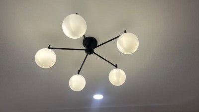 [This review was collected as part of a promotion.] All it took was 5 tiny light bulbs and it gives such bright light. Took 5-10 minutes to install. Looks modern and chic. I love the design. Use 40w bulbs.