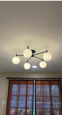 VAXCEL Armitage 32-in W Matte Black Semi Flush Mount Ceiling Light Fixture White Glass Globe Shade, LED Compatible