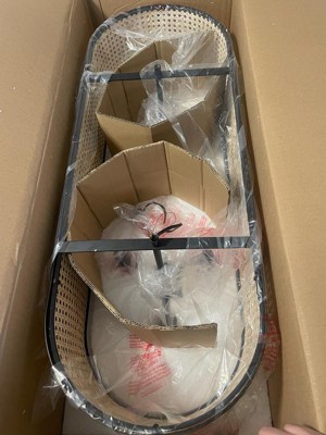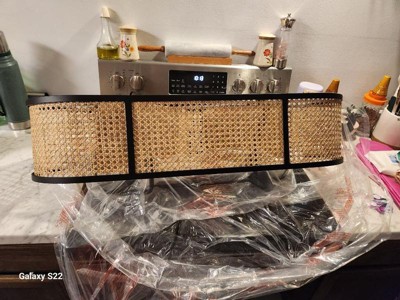 VAXCEL Berens 6L Matte Black Farmhouse Linear Chandelier Island Pendant Light Fixture Rattan Cane