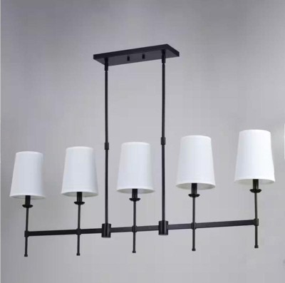 The Camden collection is a timeless take on a classic. The graceful look of the white linen fabric shades provides ambient illumination and is sure to upgrade your decor. This shaded chandelier is ideal for living or dining rooms.