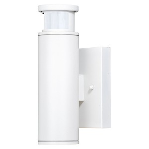 Collection: Chiasso, Material: Aluminum, Finish Color: Textured White, Width: 13", Height: 17", Depth: 15", Height From Outlet Box: 8.5", Backplate Width: 4.75", Backplate Length: 4.75", Lamping Type: LED, Number Of Bulbs: 1, Wattage: 11 Watts, Cri: 80, Color Temperature: 3000 Kelvin, Lumens: 400, Moisture Rating: Wet Rated, Desc: The cylindrical contemporary shape of the Chiasso LED collection adds a modern look to your homes exterior. Dualux dual-level outdoor security lighting is designed to fit your lifestyle and enhance the beauty, safety, and usability of your home's exterior areas. Enjoy the comfort and convenience of continuous bright illumination during the early evening hours with automatic dimming late at night to provide soft, ambient illumination until dawn. Rest assured knowing that whenever motion is detected, on-demand bright illumination will be triggered to keep your property safe and secure. You get convenience, security, and efficiency with Dualux outdoor light fix