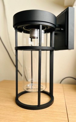 The Crestline's overall simple and minimal approach echo a sense of modernity and elegance, making it a fitting addition to your contemporary outdoor spaces. Cylinder-shaped clear glass is surrounded by a durable, corrosion-resistant aluminum frame finished in textured black to create an interesting windowpane vibe. it is built-in dusk to dawn photocell automatically turns the light on at dusk and off at dawn, saving energy during daylight hours. This outdoor wall light is ideal for your porch, entryway, garage, or any other area of your home.