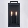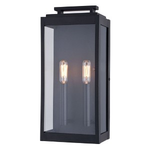 Collection: Hampton, Material: Glass, Finish Color: Textured Black, Width: 7", Height: 15.5", Depth: 4.75", Height From Outlet Box: 7.25", Backplate Width: 6.75", Backplate Length: 14", Lamping Type: Incandescent, Number Of Bulbs: 2, Wattage: 60 Watts, Dimmable: Yes, Moisture Rating: Wet Rated, Desc: Elongated, clear flat glass panels frame the Hampton collection for a clean, contemporary feel. The lantern handle and rectangle shape adds a timeless element to this outdoor wall sconce collection. Finished in textured black, the Hampton creates a bold but understated look perfect for highlighting your space. This outdoor wall light is ideal for your porch, entryway, garage, laundry room, or any other exterior or interior area of your home. Textured black finish and an updated flush mount lantern style is equally at home in exterior or interior spaces / Weather resistant steel construction provides long lasting durability; clear glass suitable for vintage Edison style filament bulb or