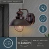 Collection: Harwich, Material: Steel, Finish Color: Burnished Bronze, Width: 7.25", Height: 15.5", Depth: 10.25", Height From Outlet Box: 3.5", Backplate Width: 5.11", Backplate Length: 7", Lamping Type: Incandescent, Number Of Bulbs: 1, Wattage: 60 Watts, Dimmable: Yes, Moisture Rating: Wet Rated, Desc: A traditional nautical lantern, the Harwich takes a classic style and makes it better. It features sturdy steel construction with multiple finish options and clear seeded glass. This farmhouse bar light is sure to be a great addition to your homes exterior decor. Mount these coastal lights on your porch, entryway, or garage and experience this look for yourself. Assembly Required: Yes / Back Plate Height: 7.00 / Back Plate Width: 5.11 / Bulb Shape: A19 / Dimmable: Yes / Shade Included: Yes. ,