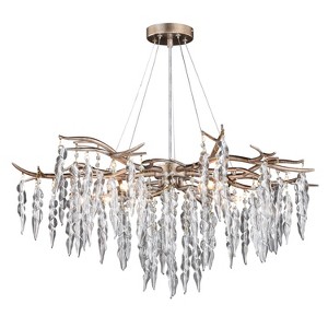 The beauty of nature is uniquely captured in this stunning collection called Rainier. A silver leaf branch-like structure gracefully suspends icicle glass strands topped with crystal beads for a glistening display of light. The elegantly styled ceiling mounted fixtures are a sure way to bring the wow factor to any dining room, living room or entryway.