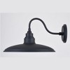 Collection: Tucson, Material: Metal, Finish Color: Textured Black/White, Width: 13", Height: 8.5", Depth: 15.5", Height From Outlet Box: 4.125", Backplate Width: 4.75", Backplate Length: 4.75", Lamping Type: LED, Number Of Bulbs: 1, Wattage: 13 Watts, Cri: 90, Color Temperature: 3000 Kelvin, Lumens: 800, Dimmable: Yes, Moisture Rating: Wet Rated, Desc: The modern farmhouse Tucson collection features a sleek low-profile design. Finished in textured black with a white interior specifically designed to enhance light output. A gooseneck shaped arm suspends the metal barn shade, and an integrated LED light source provides energy savings, minimal maintenance, and long-lasting performance. This outdoor wall light is ideal for your porch, entryway, garage, or any other outdoor area of your home. Equally suited for indoor use such as the bath, hallway, or kitchen spaces. Weather resistant metal material provides long lasting durability / Metal shade provides bright illumination and a farmhou