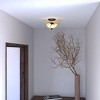 Collection: Vine, Material: Steel, Finish Color: Oil Shale, Width: 8", Height: 18", Lamping Type: LED, Number Of Bulbs: 2, Wattage: 4 Watts, Cri: 90, Color Temperature: 2700 Kelvin, Lumens: 350, Dimmable: Yes, Moisture Rating: Dry Rated, Desc: Bring a little of the outdoors inside with the Vine collection. Inspired by nature, this rustic collection features a dark oil shale finish. The amber flake glass shades are scalloped softening the overall feel. Elegantly curved arms are sprinkled with delicately crafted leaves completing the look. This full family of fixtures has something for every room in your home. This semi flush mount ceiling light is ideal for hallways, living rooms, bedrooms, entryways or utility rooms. This versatile fixture can be installed two ways; mount as a ceiling fan light kit (check compatibility with your fan) or as a semi flush ceiling light. Pull chain on-off switch or wall switch controlled. Assembly Required: Yes / Back Plate Height: 6.38 / Back Plate Wid