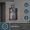 Collection: Wrightwood, Material: Steel, Finish Color: Vintage Black, Width: 10", Height: 10", Depth: 12", Height From Outlet Box: 4.25", Backplate Width: 4.75", Backplate Length: 4.75", Lamping Type: Incandescent, Number Of Bulbs: 1, Wattage: 60 Watts, Moisture Rating: Wet Rated, Desc: The Wrightwood collection, where traditional, mission and modern elements meet. The vintage black finish, clear glass shades, and clean lines create an entreating style that adds interest to your exterior spaces. Combine that with a vintage Edison style filament bulb to complete the look. Dualux dual-level outdoor security lighting is designed to fit your lifestyle and enhance the beauty, safety, and usability of your home's exterior areas. Enjoy the comfort and convenience of continuous bright illumination during the early evening hours with automatic dimming late at night to provide soft, ambient illumination until dawn. Rest assured knowing that whenever motion is detected, on-demand bright illumina