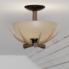 Collection: Yoho, Material: Resin, Finish Color: Black Walnut, Width: 29.5", Height: 9", Length: 12", Lamping Type: Incandescent, Number Of Bulbs: 2, Wattage: 60 Watts, Dimmable: Yes, Moisture Rating: Dry Rated, Desc: Evoking the spirit of the wilderness, this rustic themed light is clad in a black walnut finish and features creme cognac glass. It will complement a variety of home styles bringing an element of nature indoors. The Yoho collection features reproduction deer antlers making it a great choice for a vacation lodge, cabin or suburban homes. This semi flush mount ceiling light is ideal for hallways, living rooms, bedrooms, entryways or utility rooms. Assembly Required: Yes / Back Plate Height: 5.00 / Back Plate Width: 5.00 / Canopy Diameter: 5 / Bulb Shape: A19 / Dimmable: Yes / Shade Included: Yes. ,