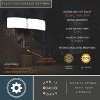 The bronze 2-light Zeta LED motion sensor security flood light provides adjustable low level brightness and color temperature while also delivering brilliant 5000K high level illumination when motion is detected. The modern light heads are fully adjustable and deliver 2,400 lumens to keep your home's exterior brighter at dusk, dimmer at night, and instantly bright when motion is detected. This dualux security light expands the functionality, safety, and security of your home's outdoor spaces with bright, reliable light when and where it is needed.