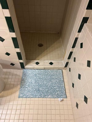 [This review was collected as part of a promotion.] This bathmat is super soft and absorbent. The material on the bottom of the Mac keeps it in place. It doesn’t slip around on the bathroom floor. Love the colors and they match perfectly with my bathroom. The mat dried fairly quickly. I do wish it was a little bit bigger.