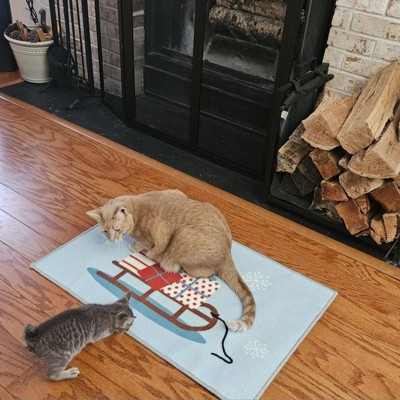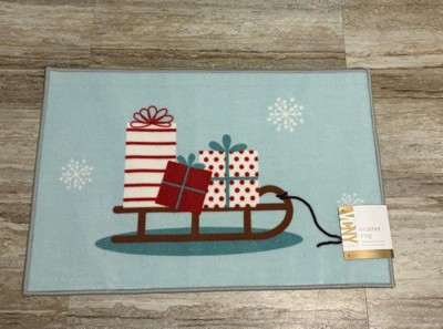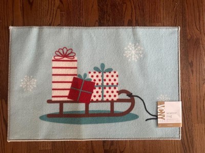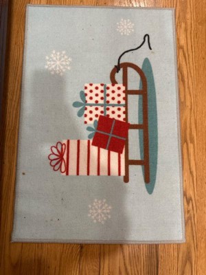 VCNY 1'8"x2'6" Washable Christmas Sleigh Holiday Machine Woven Scatter Accent Rug Light Blue: Non-Skid, Low Pile, Indoor
