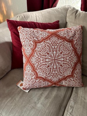 VCNY 20"x20" Oversize Boho Medallion Cotton Square Throw Pillow Ginger Spice: Decorative Accent for Indoor Use
