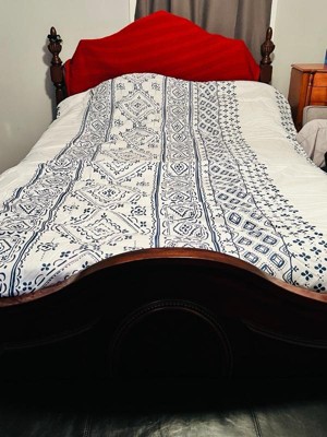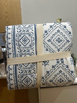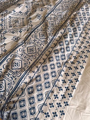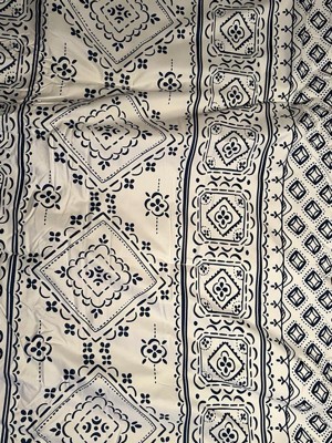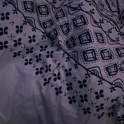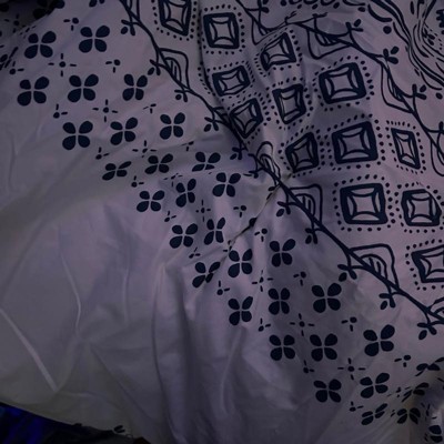 [This review was collected as part of a promotion.] The twin geometric comforter set is wonderfully lightweight, delightfully soft, and incredibly comfortable to relax on. It’s perfect for summer use, and the charming navy pattern over white adds a touch of elegance. I highly recommend it, especially for a guest room! The only flaws I can see are that the pattern was printed uneven in my set and that the stitches on the top are noticeable.