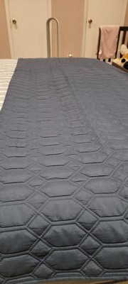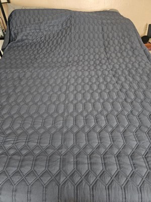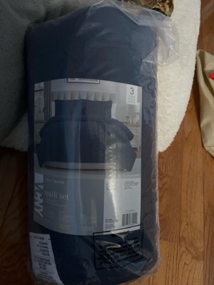 [This review was collected as part of a promotion.] This quilt set is so pretty! I love the dark blue color and diamond texture pattern. It’s moderately soft and very lightweight, making it easy to clean in the washer. It also does not feel too hot because it allows for good airflow and is thin in thickness. Looks modern and of good quality! I feel it is durable and will last through many washings.