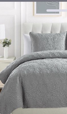 Add relaxing beach vibes to your bedroom décor with the VCNY Home Ocean 3-Piece Solid Seashell Pinsonic Coastal Quilt Set. A cool, coastal addition to your primary bedroom or guest room décor, this solid quilt set has pinsonic textured seashell patterns and lightweight microfiber fabric suitable for all seasons. This 3-piece quilt set is available in three solid colors and includes a quilt and coordinating shams to complete the look. You can keep this VCNY Home bed set looking fresh by machine washing it in cold water with similar colors and drying it on a low setting as needed.