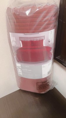 [This review was collected as part of a promotion.] This is a very nice thick material. It’s very comfortable. It’s comes in three pieces, the quilt, and two pillowcases. It really seems like a very nice durable quality material. It is a beautiful rich, cranberry color. I would definitely buy this.