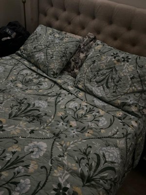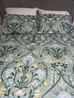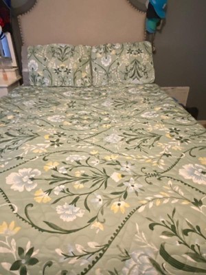VCNY 3pc Home Province Green Floral Damask Printed Quilt Set Green