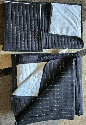 [This review was collected as part of a promotion.] This set includes 2 standard size pillow shams and 1 quilt blanket. It's a nice thin blanket for chilly nights. It looks stylish. The color is black with white stripes and other side is white. It's not bulky and easy fit into washing machine. It's soft and comfortable. The quality is good.