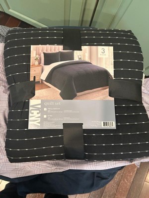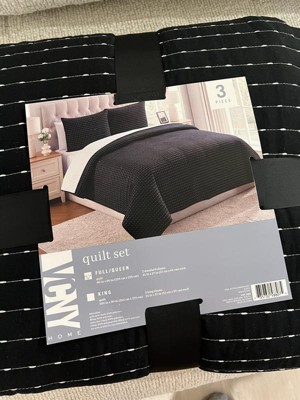 VCNY 3pc King Home Embroidered Pick Stitch Microfiber Quilt Set Black