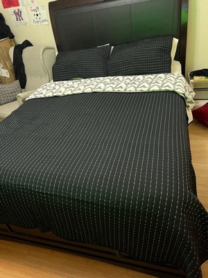 [This review was collected as part of a promotion.] The quilt set fits perfectly on a queen size bed, offering generous coverage on all sides without being overly bulky. It drapes nicely and stays in place throughout the night. The embroidered pick stitch pattern adds a subtle, modern touch that complements both neutral and bold decor. The minimalist black and white color palette looks sleek and clean. After multiple washes, the fabric holds up well with no fading or fraying. The stitching remains intact, and the quilt keeps its shape. Soft to the touch and lightweight, this microfiber quilt is perfect for year round use.