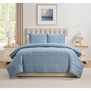 VCNY 3pc King Home Solid Square Pinsonic Textured Quilt Bedding Set Blue
